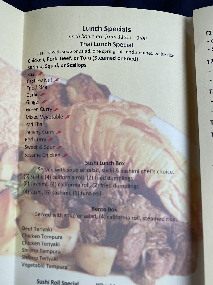 (2) tuna, salmon, yellow tail, white tuna, eel, crab sticks, red snapper. Shrimp tempura, spicy tuna, and California rolls. (38 pieces total). Served with soup or salad